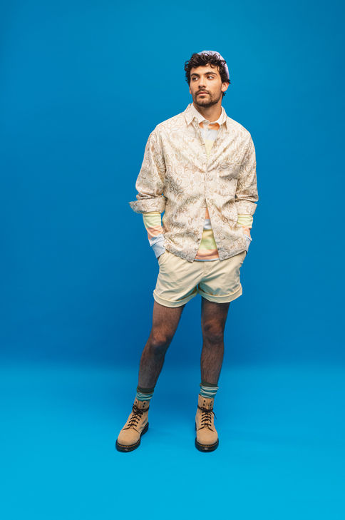 Créatifs, homme, portrait, couleurs, styliste, fleurs, mode, fashion, original, studio